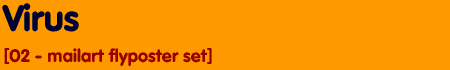 virus Creativity is a collective experience, it is accumulative. The visual artifact is not a product of individual creative genius; it is an adaptation from a determined condition, built on what has gone before. We draw on the collective visual environment:- challenging, adapting, both reinforcing and opposing, growing. The viral culture contaminates and tarnishes where it feeds off its host; as a parasite it is a product of the same environment, sharing elements in a common bond of causality and development. Each needs the other, a symbiotic relationship, collective. |