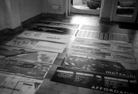 For the third issue, we returned to posters - this year obtaining a small shop front in the old part of the town, where we put up the exhibition. Again, 16 screenprinted posters on drafting paper based on the theme "Local and Global".