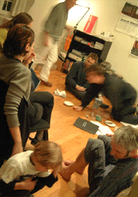 Collective Distribution is a network of artists designers and writers who came together for the summer of 2001 in Stuttgart, Germany, invited by Gerard Paris-Clavel of Ne Pas Plier. What brought us together was our engagement in social and political contexts in our countries. Wanting to intervene with different strategies in situations we want to change, encouraging others, and not least ourselves, to take action in shaping society. Together we worked on a few projects, one of which was creating a space in Brussels, called L'atelier des (in)visables during the anti-EU demonstrations. |