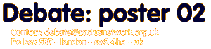 (London) Debate what debate? In academic circles and the design journals we have fallen into a trap of regarding work of merit or note as that which, at best, seeks to illustrate and confirm the theories of postmodern French theorists, Barthes, Sassure etc without a critical integration of those theories it purports to employ. This is aptly demonstrated in recent history by the failed attempt at the Cranbrook Academy in the US to explore the relationship between linguistics, in particular deconstruction and post structuralism, and visual communications. In retrospect it is possible to view the real value of the work of those students and staff as being significant for having raised the discussion of a genuine intellectual base for graphic design. What is unpalatable is the wave of shallow stylistic poses, and empty rhetoric, that have been subsequently generated elsewhere. The visual hubbub that followed the publicity surrounding that limited period at Cranbrook is indicative of the state we now find ourselves in. It could be argued that even education's well intentioned drive towards a theoretical positioning of graphic design has faltered. Are we now witnessing Graphic Design that is as dumbly pretty as ever before with the only difference being that we now have some interesting theories to justify its existence? Graphic Design, residing as it does in the pluralist confusion of the late 20th century, would do well to attend to its current stasis. The short history of Graphic Design has seen a progressive dilution of the earlier social interventions and political project of the European modernists into a thinly veiled acceptance of capitalist values and hegemonic world orders. The safe experimentation of the last decade has clearly not lead to Jan Van Toorn's statement that 'experimentation is an anticipation of innovation' (issue 2 Zed). The lack of an ideological project within education re-enforced by a 'market forces' dominated industry has created a culture of compliance, non opposition and at best contained rebellion. We are witnessing the accelerated growth of visual pollution and more alarmingly a paucity of intention. The mediating role of design as a positive force in society has been sidestepped as in issue in favour of feeding a moribund industry with style analogues, content to plunder the work of more genuine experimentalists and trading integrity for stylistic conceit. Any future hopes for a more considered and intellectual project within graphic design are not entirely predicted by the consideration of the real role of theoretical approaches to the subject. But one might accurately predict that without a re-examination of the intention and perceived relevance of these debates we are doomed to produce another generation of Disney theorists and 2nd class postmodernists. A drive towards the creation of a generic theoretical discussion from within the subject can only be brought about if certain conditions prevail. Whist some might argue that this approach may be irrelevant or unwelcome, the alternative is the continued dumbing down and increasingly subservient status of graphic design within the wider communications industry. Are all concerned content to accept that we cannot move forwards without either borrowing from without and aping the poses of others or retreating into the role of education as pimping for an overlord industry? No one is innocent but some are more guilty than others. In England, in particular, the usual target for criticism is art school education. Charges range from the lack of skills teaching to inadequate creative development - accusations made by a 'tabloid like' design press ordinarily more concerned with an outraged ranting about free pitches and stock market floatations than an informed debate surrounding education and its articulation with the industry. The real villain however is the Graphic Design industry itself; content to repurpose creative innovation and wholly consumed with business and the creation of wealth. On the few occasions industry chooses to comment from on high about education the ill-informed statements only confirm its inability to see beyond its own short term preoccupations. It behaves like an adulterous lover - it is happy to go to bed with education but it really must go back to its wife now. What we should consider is the unfortunate continuing separation between training and practice - a cannibalistic process of recuperation and a hierarchical imbalance. The over provision of graphic design training and post Thatcherite competition within the educational establishments has lead to a weakening of the perceived value of degree and postgraduate education. Russ Bestley
