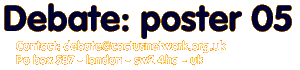 With a long history of interesting political investigation from Constant's 'Unitary Urbanism' to texts by Michel de Certeau and Mike Davis, the urban landscape provides the direct contact between public spaces and the audiences of visual culture, especially the more dominant kind. Art and design in general still tend to see itself divorced from this world, but increasingly cannot avoid it. |