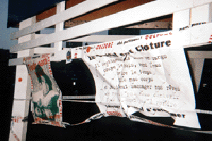 Le Lieu Gallery was used as a point of distribution for the amassed stickers, leaflets and posters from the many groups brought together by Ne Pas Plier. Ne